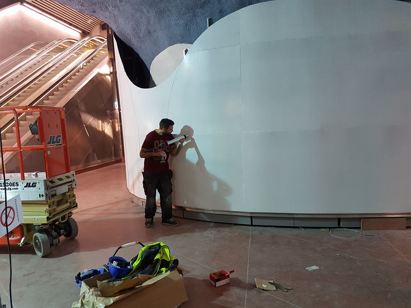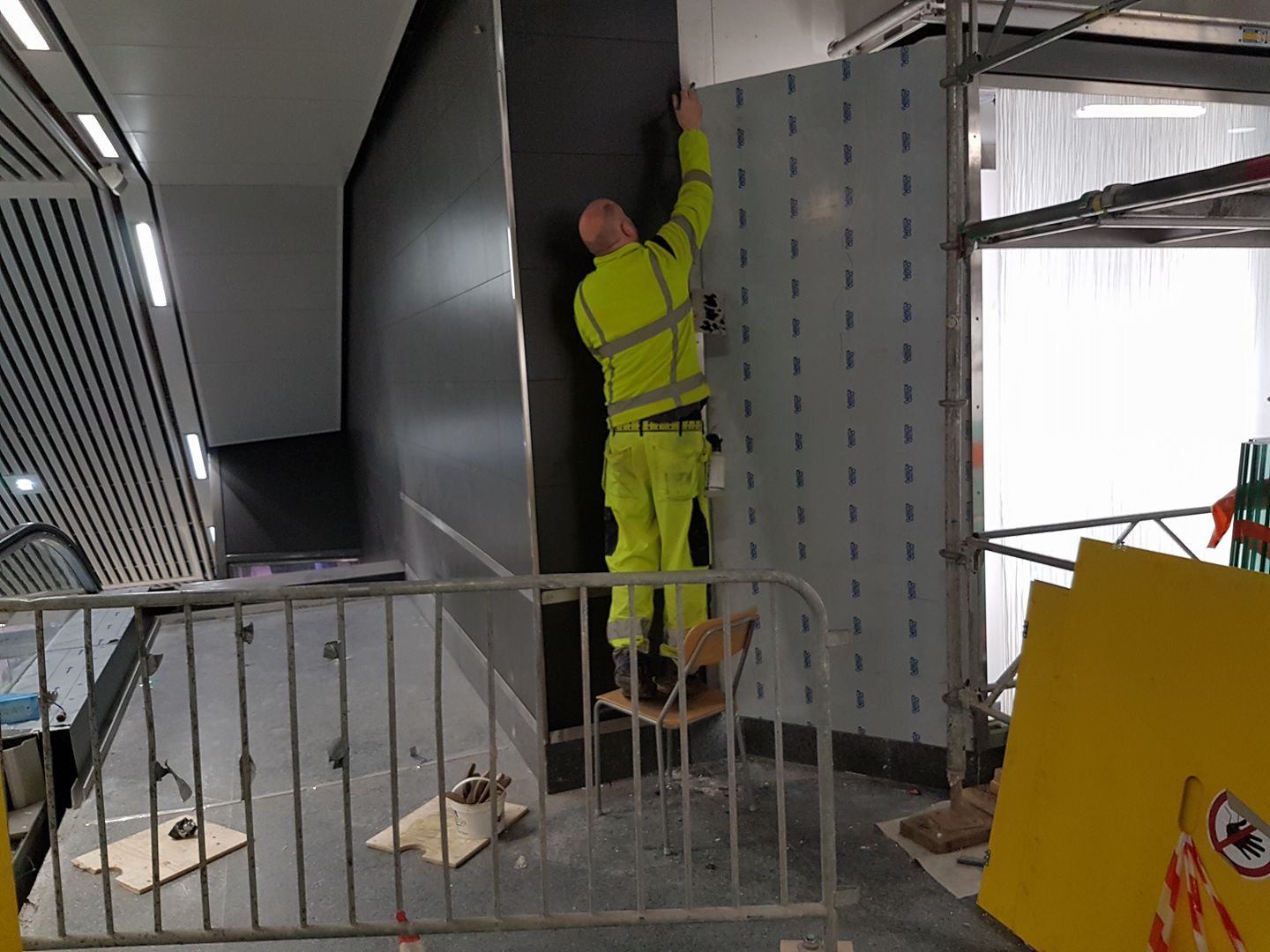 Citybanan Fogrenovering. Åkeshov Simhall Fogning av spiraltrappa mot terazzo. Filmhuset Östermalm Stenfasad. Fleminggatan/Scheelegatan på Kungsholmen Järvastaden. Skanska Fasadfogning. Veidekke Beckomberga Structural Glazing. Solna